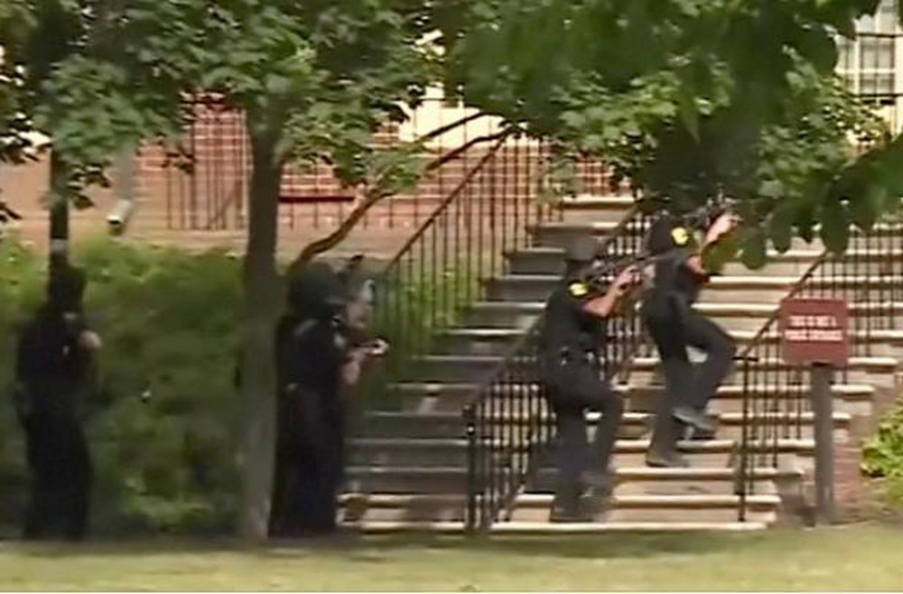 Các cảnh sát Mỹ tiến vào tòa nhà để không chế nghi phạm xả súng. Ảnh: Reuters.