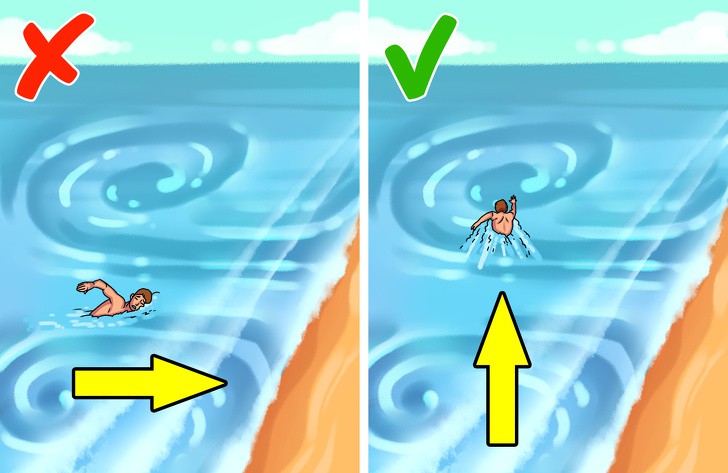 Giải pháp ở đây là phải bơi ngang để thoát ra khỏi dòng ngược - nghĩa là bơi song song với bờ biển. Sau khi thoát ra bạn mới có thể bơi về được.