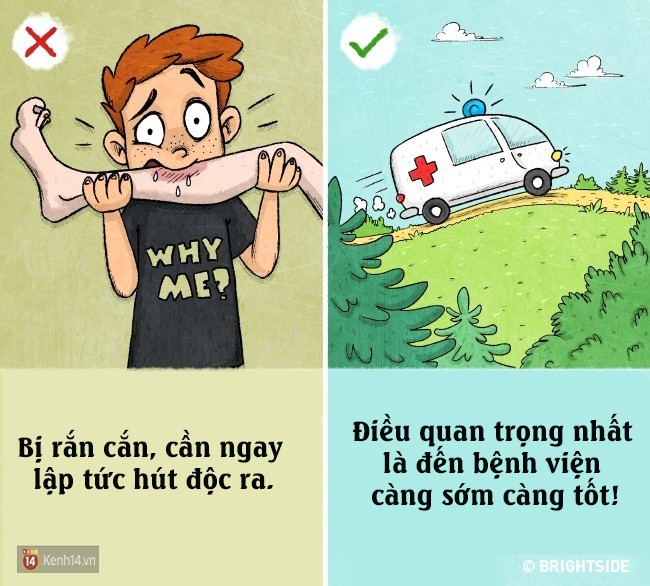 Trong phim, chúng ta thấy những người bị rắn độc cắn thường phải nhờ ai đó hút độc, hoặc chườm lạnh, thậm chí... đốt vết thương để khử độc. Nhưng thực tế thì tất cả những việc làm đó đều đã sai.