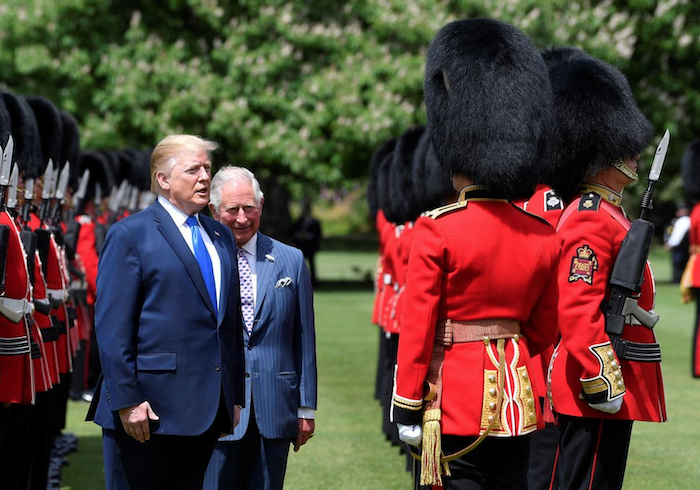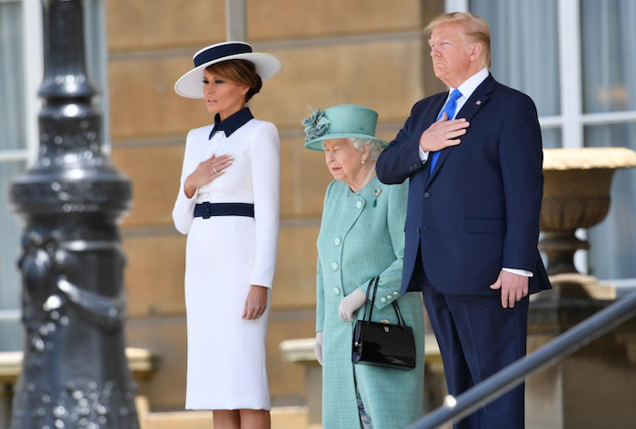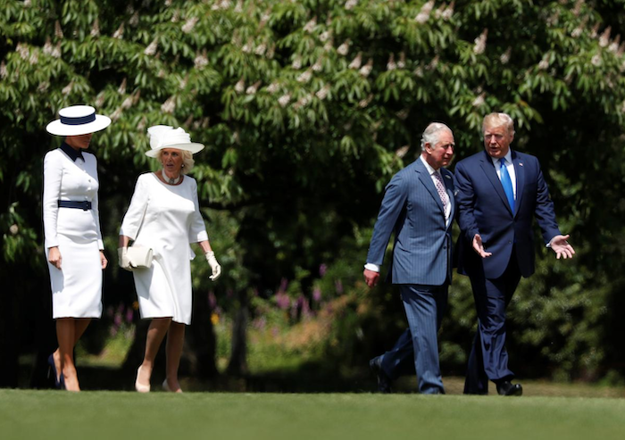 Tại Cung điện Buckingham, trong khi Thái tử Charles và Tổng thống Trump duyệt binh danh dự, Đệ nhất Phu nhân Melania Trump đứng bên cạnh Nữ hoàng Elizabeth và vợ của Thái tử Charles là bà Camilla.