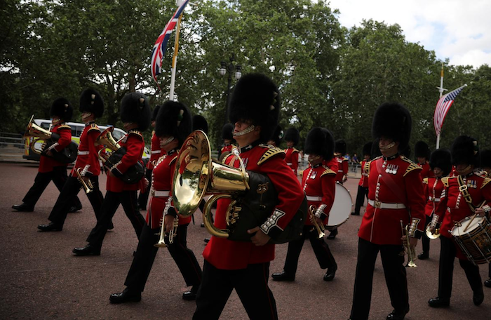 Ban nhạc diễu hành trong chuyến thăm của Tổng thống Hoa Kỳ Donald Trump và Đệ nhất Phu nhân Melania Trump tới Anh vào ngày 3/6/2019. (Ảnh: Reuters/ Alkis Konstantinidis)