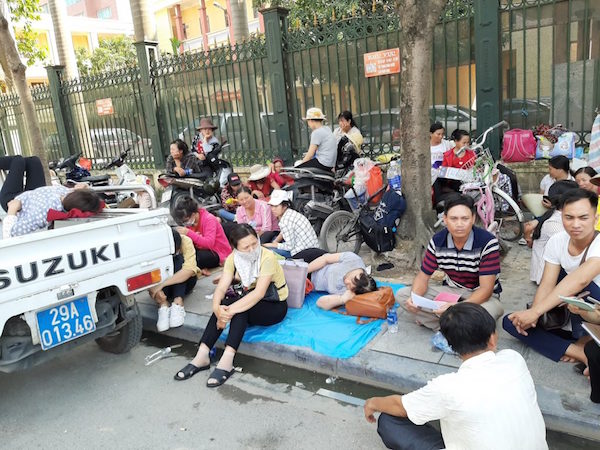 Người dân ngồi la liệt vỉa hè trước cửa trụ sở Trung ương ở Hà Nội.