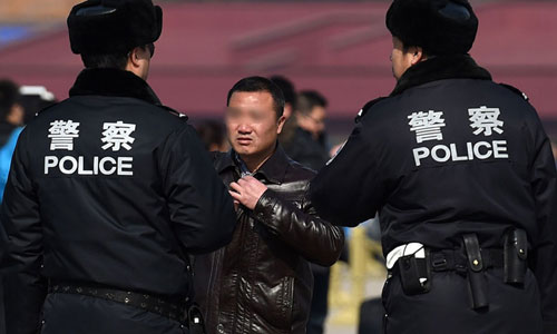 Cảnh sát Trung Quốc kiểm tra giấy tờ một người đàn ông ở Bắc Kinh. Ảnh: AFP.