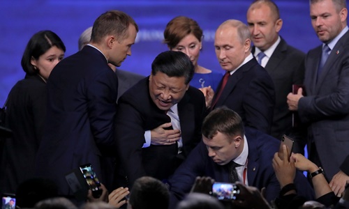 Ông Tập thăm Nga ngày 5-7/6, khẳng định mối quan hệ ngày càng tốt đẹp với nước láng giềng và gọi ông Putin là "bạn thân". Kim ngạch thương mại Nga - Trung năm 2018 là 108 tỷ USD, tăng 25% so với năm trước, với các dự án hợp tác và giao dịch về quân sự, năng lượng, giao thông, nông nghiệp, hàng không và không gian.