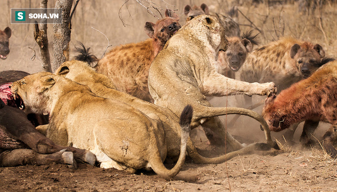 Linh cẩu không hề sợ sư tử bởi chúng thường đi theo bầy đàn. Tuy nhiên, lần tấn công này lại là một sai lầm của chúng. Chúng đã khiến đàn sư tử nổi điên và phản công lại vô cùng hung hãn.