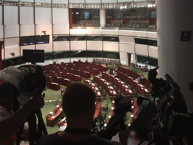 Chính quyền Hong Kong đã khuyên các nhân viên làm việc cho các cơ quan chính quyền tránh lái xe tới chỗ làm. Hình ảnh do phóng viên chụp lại từ bên trong phòng họp của Hội đồng Lập pháp sáng nay cho thấy cảnh tượng vắng vẻ, khi rất ít nghị sĩ tới được trụ sở của hội đồng do người biểu tình bao vây các tuyến đường quan trọng tại trung tâm Hong Kong từ đêm qua.