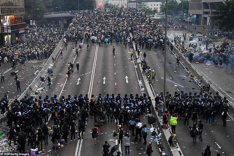 Các cuộc đụng độ đã bùng nổ trên khắp Hong Kong trong hôm 12/6, khi mà lực lượng cảnh sát cố gắng chặn dòng người biểu tình đi vào trong tòa nhà Nghị viện của thành phố. Hàng chục nghìn người tham gia tuần hành đã làm tê liệt nhiều tuyến phố trong lúc phản đối dự luật dẫn độ tới Trung Quốc của chính quyền đặc khu.
