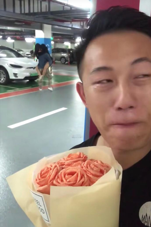Một chàng trai Trung Quốc bí mật mang hoa tới chúc mừng sinh nhật bạn gái nhưng lại bật khóc khi chứng kiến thấy người bạn gái của mình lại ôm ấp người khác, khiến quá đau khổ trước những gì nhìn thấy, phải cố gượng cười sau đó nhanh chóng rơi nước mắt.