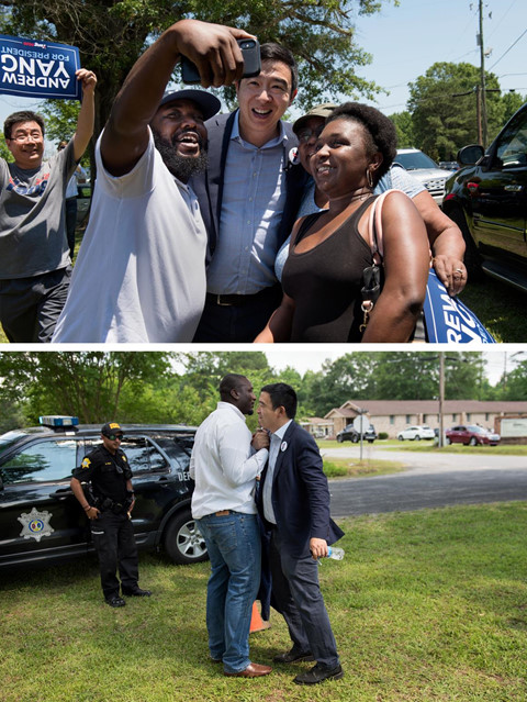 Ông Andrew Yang tiếp xúc cử tri ở South Carolina hồi tháng 5. Ảnh: Politico.