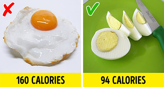 Mẹo chọn thực phẩm ăn uống đúng cách không phải ai cũng biết. Tuỳ theo nhu cầu bạn nên chế biến thực phẩm phù hợp. Trứng luộc và trứng chiên mỗi cách chế biến sẽ sinh ra lượng calo khác nhau.