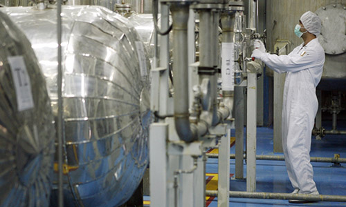 Kỹ thuật viên kiểm tra van tại một cơ sở làm giàu uranium cách Tehran hơn 400 km. Ảnh: Reuters.