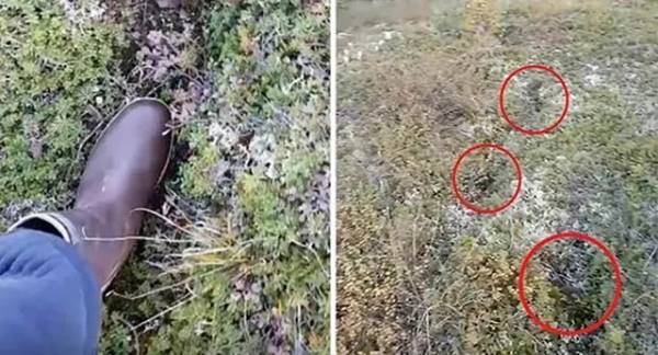 Một trong những thợ săn ghi lại rõ ràng trong video rằng những dấu vết này rõ ràng vừa với hai đôi ủng của anh ta và chúng dẫn vào rừng.