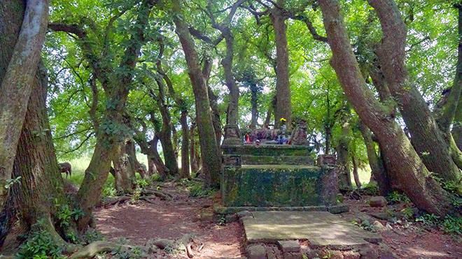 Ngôi mộ cổ nằm ở chính giữa gò Vình, dưới những tán lộc vừng ngàn năm tuổi.