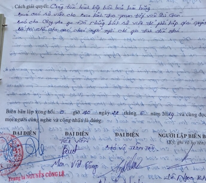 Vụ việc có nhiều nghi vấn nên tổ công tác tàu SE 28 đã lập biên bản vụ việc. Ảnh: Đình Thiên