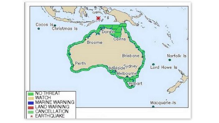 Trung tâm cảnh báo sóng thần Thái Bình Dương có trụ sở tại Hawaii và Cục Khí tượng Úc đã ban hành các tuyên bố nói rằng không có mối đe dọa sóng thần hiện tại đối với Úc.