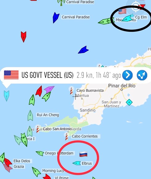 Sự xuất hiện của tàu chiến Mỹ khi tàu Nga đến Cuba đã được một chuyên gia quân sự Thổ Nhĩ Kỳ phát hiện. (nguồn: Yoruk Isik)