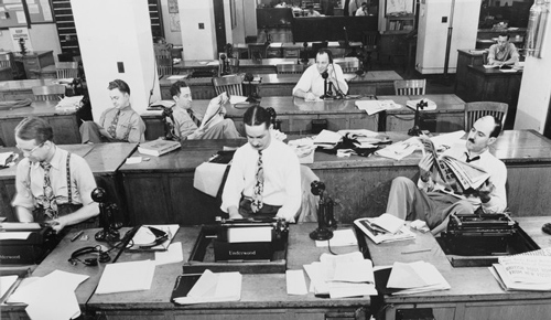 Công việc ngày xưa ở các văn phòng kết nối trực tiếp với nhau nhiều hơn. Ảnh: Ba-bamail.