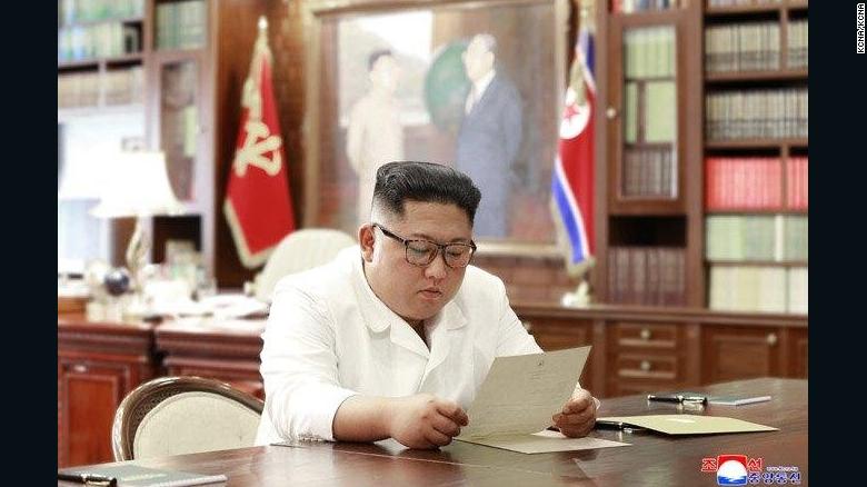 Bức ảnh ông Kim đọc lá thư do Tổng thống Mỹ Donald Trump gửi.