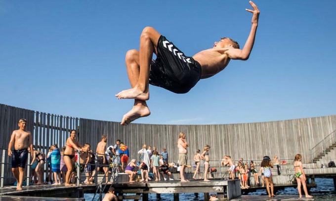 Người dân phía bắc thủ đô Copenhagen, Đan Mạch cũng tìm đến các hồ bơi khi nhiệt độ tăng cao. Meteo-France hôm qua cảnh báo hầu hết các thành phố lớn ở châu Âu sẽ hứng chịu mức nhiệt trên 40 độ C trong những ngày tới.