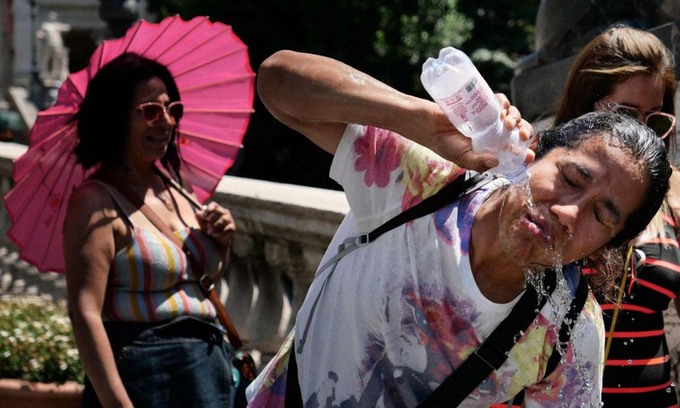 Du khách ở Rome, Italy hôm 24/6 lấy nước từ vòi công cộng trong đợt nắng nóng bất thường đầu mùa hè. Chia sẻ với CNN, nhà khí tượng học Brandon Miller cho rằng mức nhiệt trong đợt nắng nóng ở Trung và Tây Âu lần này đã vượt xa ngưỡng trung bình, cao hơn cả các cảnh báo nắng nóng nguy hiểm. Ông cho rằng tình trạng sẽ trở nên tồi tệ hơn nếu độ ẩm trong không khí cao, nhiệt độ sẽ không hạ nhiều vào ban đêm.