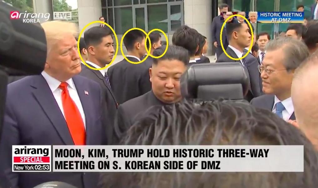 Các vệ sĩ bảo vệ Chủ tịch Triều Tiên Kim Jong-un tại Hội nghị Thượng đỉnh Mỹ-Triều lần 3 (Nguồn: Twitter)