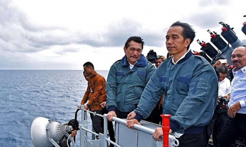 Tổng thống Indonesia Joko Widodo trong một lần trên chiến hạm gần quần đảo Natuna