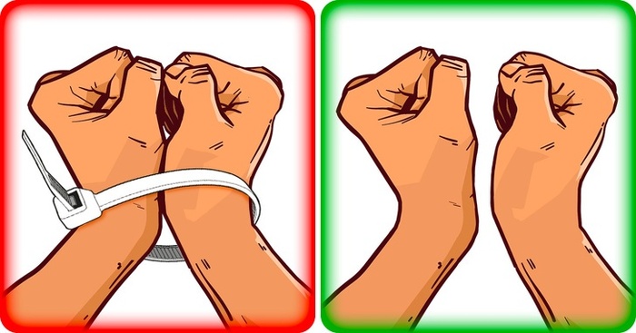 - Kéo tay bị trói về phía ngực và di chuyển chân xa nhất có thể để tạo lực.