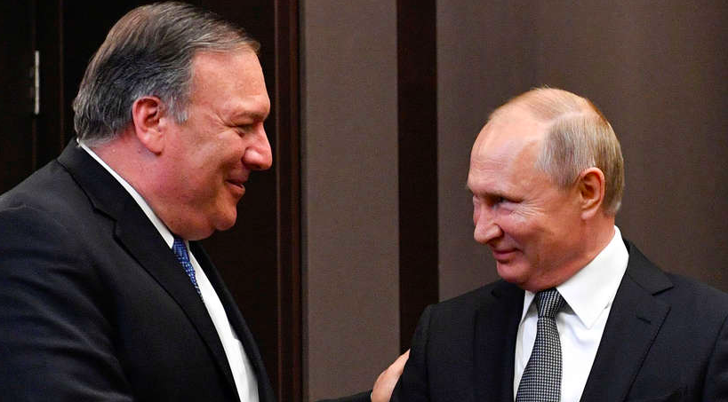 Ngoại trưởng Mỹ Mike Pompeo (trái) và Tổng thống Nga Vladimir Putin tại khu dinh thự Bocharov Ruchei ở Sochi, Nga vào ngày 14/5/2019 (ảnh: Reuters)