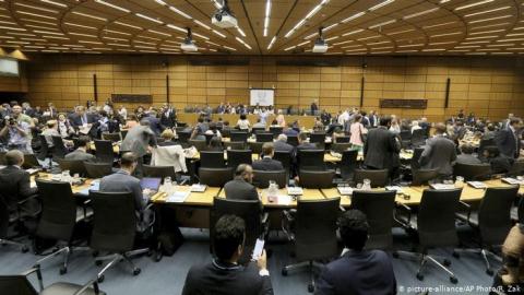 Trước đó cùng ngày, đại diện Mỹ đã đề xuất một cuộc họp khẩn tại Cơ quan Năng lượng Nguyên tử Quốc tế (IAEA) có trụ sở ở Vienna. Phát biểu tại cuộc họp có đại diện 35 quốc gia tham gia, đại diện Mỹ tại IAEA Jackie Wolcott tuyên bố, Iran đã làm giàu uranium vượt quá giới hạn được phép mà họ đã cam kết trong thỏa thuận năm 2015.
