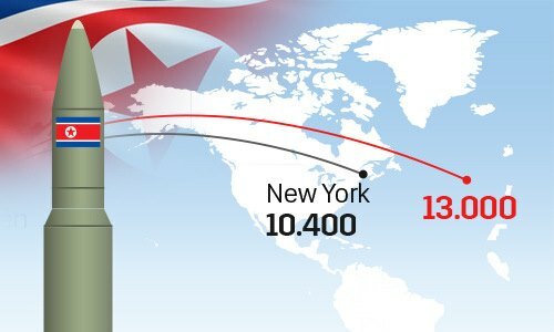 Mỹ xác nhận tên lửa Triều Tiên có thể tấn công mọi mục tiêu trên lãnh thổ. Lực lượng Mỹ thừa nhận điều này. Tầm bắn của Hwasong-15 lên tới gần 13.000km.