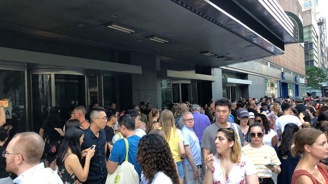 Người dân nhốn nháo di chuyển ra khỏi nhà hát AMC tại Quảng trường Lincoln do mất điện. Ảnh: NBC