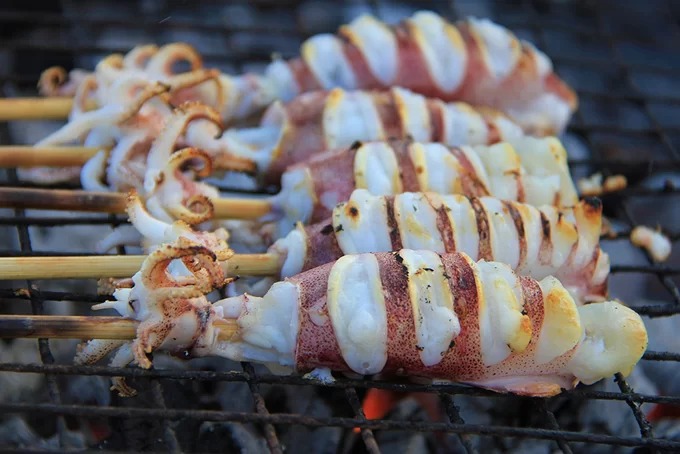 Mực nướng là một món cũng khá phổ biến trên các con đường tại trung tâm Seoul. Mực tươi được làm sạch, tẩm gia vị cho thấm và nướng nguyên con. Bạn cũng có thể yêu cầu chủ hàng cắt nhỏ thành từng miếng để dễ ăn. Nước sốt và tương ớt là hai gia vị không thể thiếu giúp tăng thêm độ ngon cho miếng mực nướng.