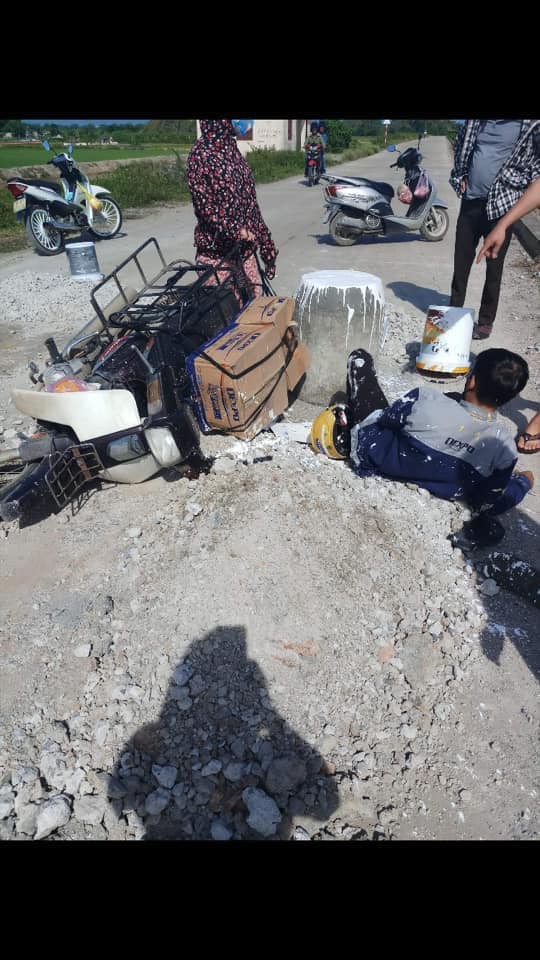 "Đây là hai trụ bê tông được mọc lên giữa đường mà người dân làm để bảo vệ tuyến đường của họ. Không hề có phản quang để cảnh báo. Từ sáng đến tối không biết bao nhiêu vụ tai nạn xảy ra. Và khi anh thợ sơn bị ngã vào chiều hôm qua thì có người thấy tiện, quét sơn trắng vào trụ cho nó nổi.