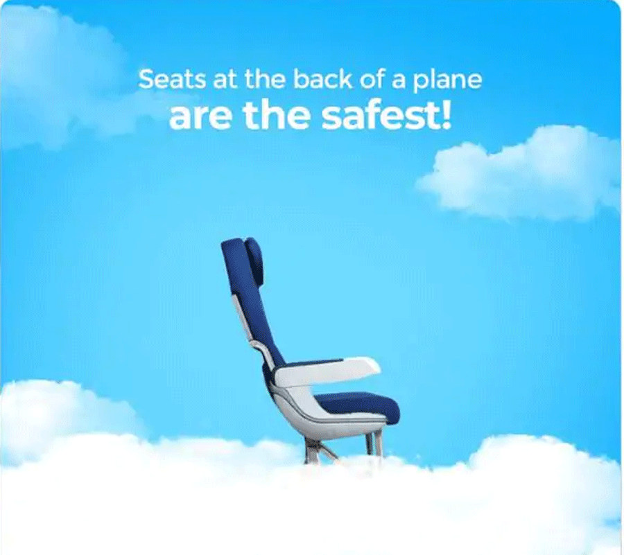 Theo đoạn thông tin này, tỷ lệ tử vong của những hành khách ngồi ghế phía giữa máy bay là cao nhất, tiếp theo là ghế gần buồng lái. Còn các ghế ngồi ở phía sau máy bay là an toàn nhất, bởi vị trí một phần ba tính từ đuôi máy bay ít nguy cơ nhất khi sự cố xảy ra.