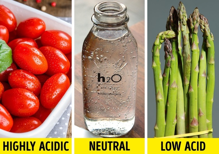 Các chất khác nhau bao gồm cả thực phẩm, bất kể là chất rắn hay chất lỏng đều có độ pH. Trên thang điểm từ 1 đến 14, thực phẩm có độ pH dưới 7, được coi là có tính axit.