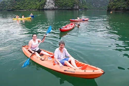 Bà Louise và Lynne cùng tham quan hang Sáng - Tối, chèo kayak, bơi lội, câu cá đêm và tập dưỡng sinh dưới ánh bình minh. Cả hai ấn tượng trước trải nghiệm ngồi thuyền tre thăm đảo và may mắn thấy những con khỉ hoang dã, thậm chí còn có cơ hội vào buồng lái và trò chuyện cùng thuyền trưởng.