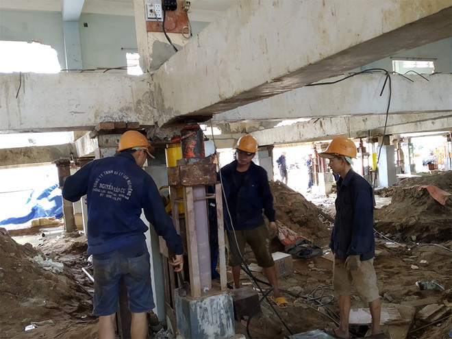 Để nâng toàn bộ khối chính nhà thờ nặng hơn 4.000 tấn lên cao 2m so với vị trí cũ, “thần đèn” đã phải nhập khẩu thêm nhiều thiết bị, máy móc hiện đại, sử dụng cùng lúc 53 con đội với 3 trạm điều khiển trung tâm.