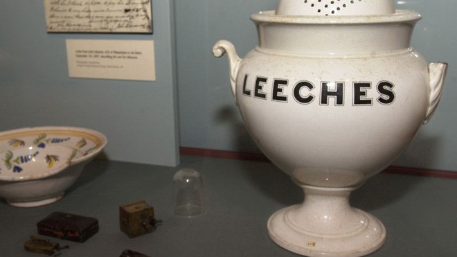 Một lọ sứ bày đỉa luôn có mặt trên quầy các bệnh viện và nhà thuốc tại Châu Âu trong thế kỷ 19.