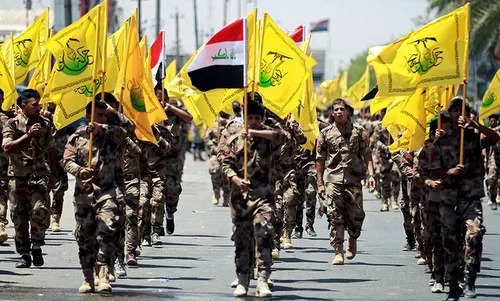 Dân quân PMF diễu hành trên đường phố Baghdad năm 2017. Ảnh: AFP.