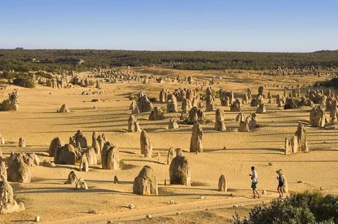 The Pinnacles nằm phía bắc của Perth trong sa mạc Nambung, Tây Úc. Ở đây có bộ sưu tập đá vôi lớn, rất kỳ lạ rộng hàng km, với những hình thù vô cùng kỳ quái, được miêu tả là giống như “trên sao Hỏa”. Theo truyền thuyết, những tảng đá này đại diện cho số lượng lớn cư dân địa phương đã chết trong các trận bão cát sa mạc. Và những khối đá này đóng vai trò như một lời cảnh báo cho người dân địa phương tránh xa sa mạc đáng sợ.