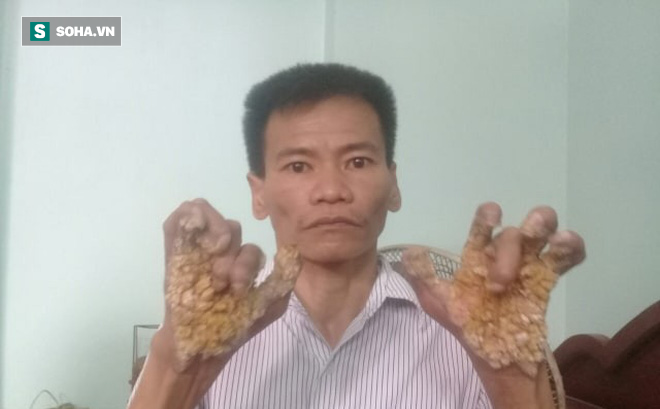 Nhưng cục thịt ấy đã không biến đi. Cục thịt tiếp tục tăng trưởng từng ngày, hàng loạt những mụn cóc bật lên xung quanh, rồi phát triển ở cả 2 chân và 2 tay, trông xù xì biến dạng giống hệt như vỏ cây xà cừ. Bà Vay kể với chúng tôi rằng, vào thời điểm đó những mụn cóc trông rất khó coi, mấy lần Sơn định dùng dao phay cắt nó đi.