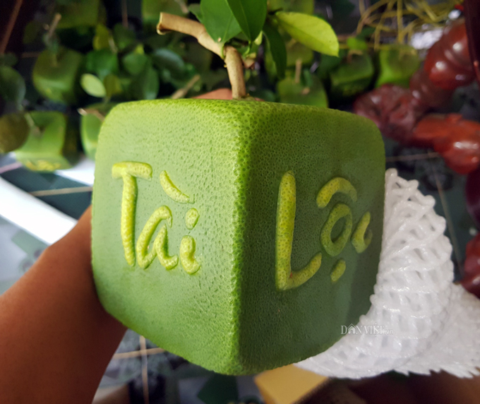 Bưởi tạo hình đồng tiền có chữ Tài Lộc.