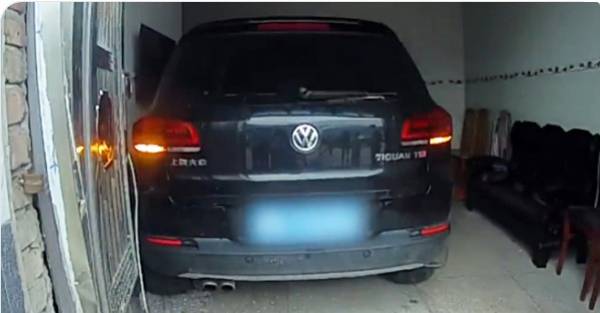 Vụ việc xảy ra tại Trùng Khánh, Trung Quốc hôm 7/8. Chiếc Volkswagen Tiguan do một phụ nữ điều khiển ldo tránh một con chó thả rông đã lao vào nằm trong phòng khách ngôi nhà ven đường sau cú đá_n_h lái gấp.