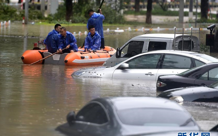 Nước ngập sâu tại thành phố Ôn Lĩnh, tỉnh Chiết Giang. Ảnh Tân Hoa xã.