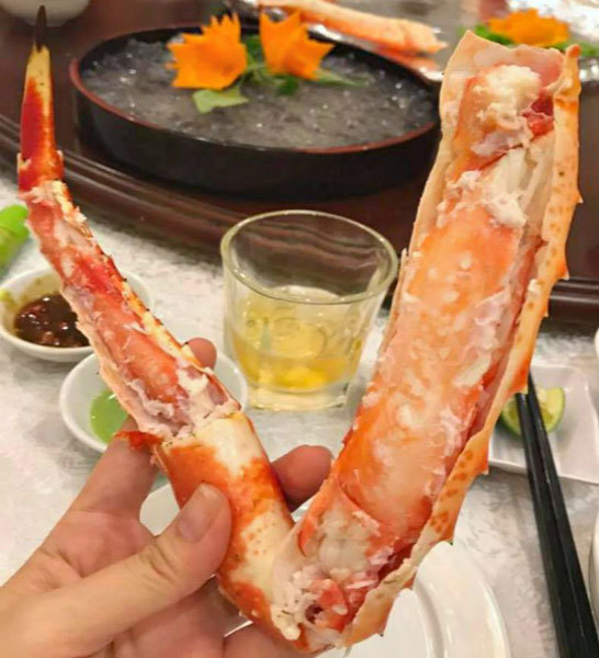Gần đây, ngoài ăn cua nguyên con, dân Việt còn mua những bộ chân cua Alaska dài nửa mét về thưởng thức với giá vài triệu đồng/bộ.