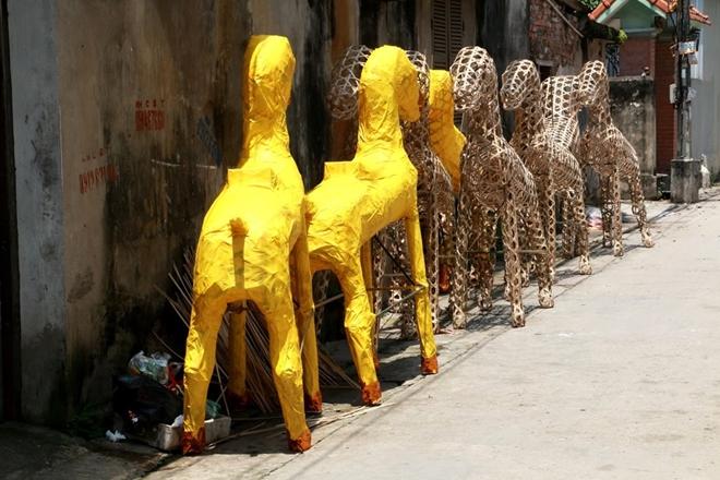 Để làm ra một hình nộm phải trải qua rất nhiều công đoạn mà công việc đầu tiên là tạo dáng từ khuôn tre. Nhiều hộ trong làng đã phải đi mua tre từ cả tháng trước.