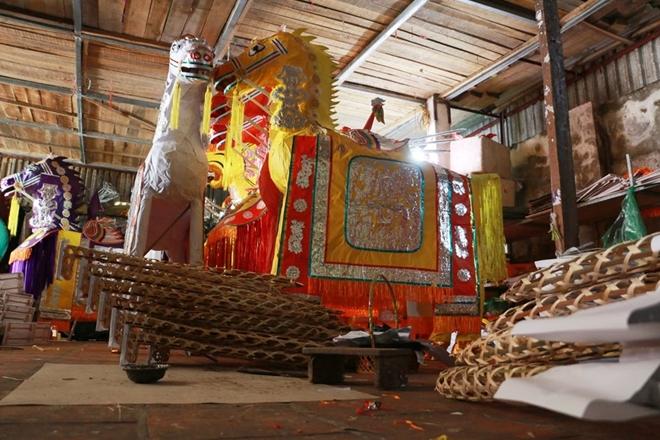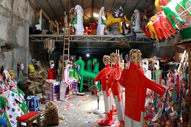 Hiện đã gần Rằm tháng Bảy Âm lịch, làng Phúc Am càng bị "tràn ngập" trong vàng mã. Trong ảnh là những hình nộm đang làm dở tại một hộ sản xuất trong làng.