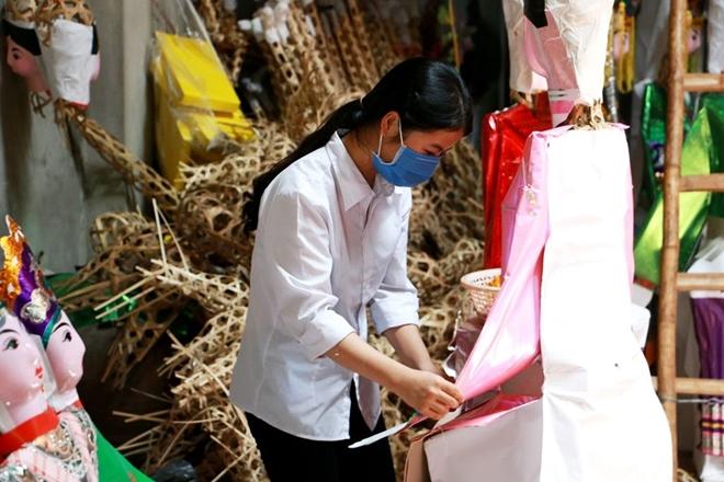 Mỗi năm vào dịp cận Tết và Rằm tháng 7 Âm lịch cả làng đều nhộn nhịp với hoạt động sản xuất vàng mã.
