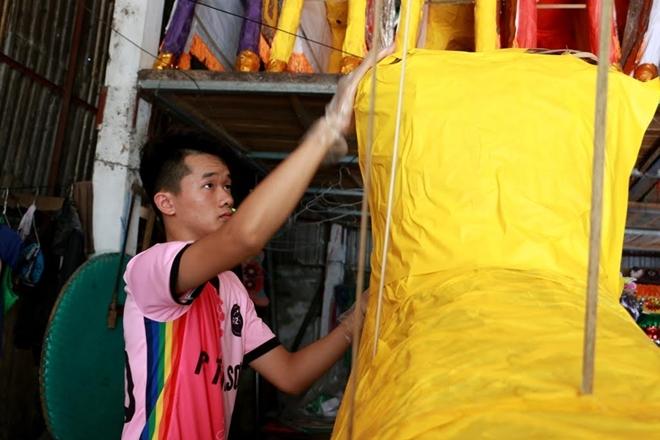 Sau đó người thợ mới dán giấy bồi, trang trí...