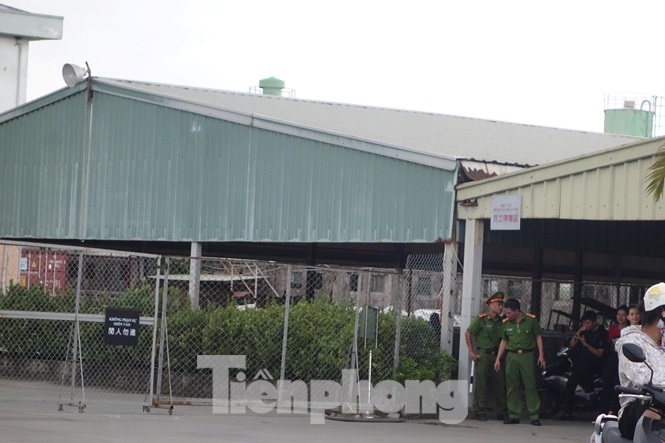 Tại thời điểm này, các tòa nhà văn phòng và khu vực công xưởng của Công ty này vẫn đóng kín, có hàng rào chắn và bố trí bảo vệ. Lực lượng công an cũng có mặt tại khu vực cổng và trong sân để đảm bảo an toàn trật tự do công nhân tụ tập ở đây khá đông.